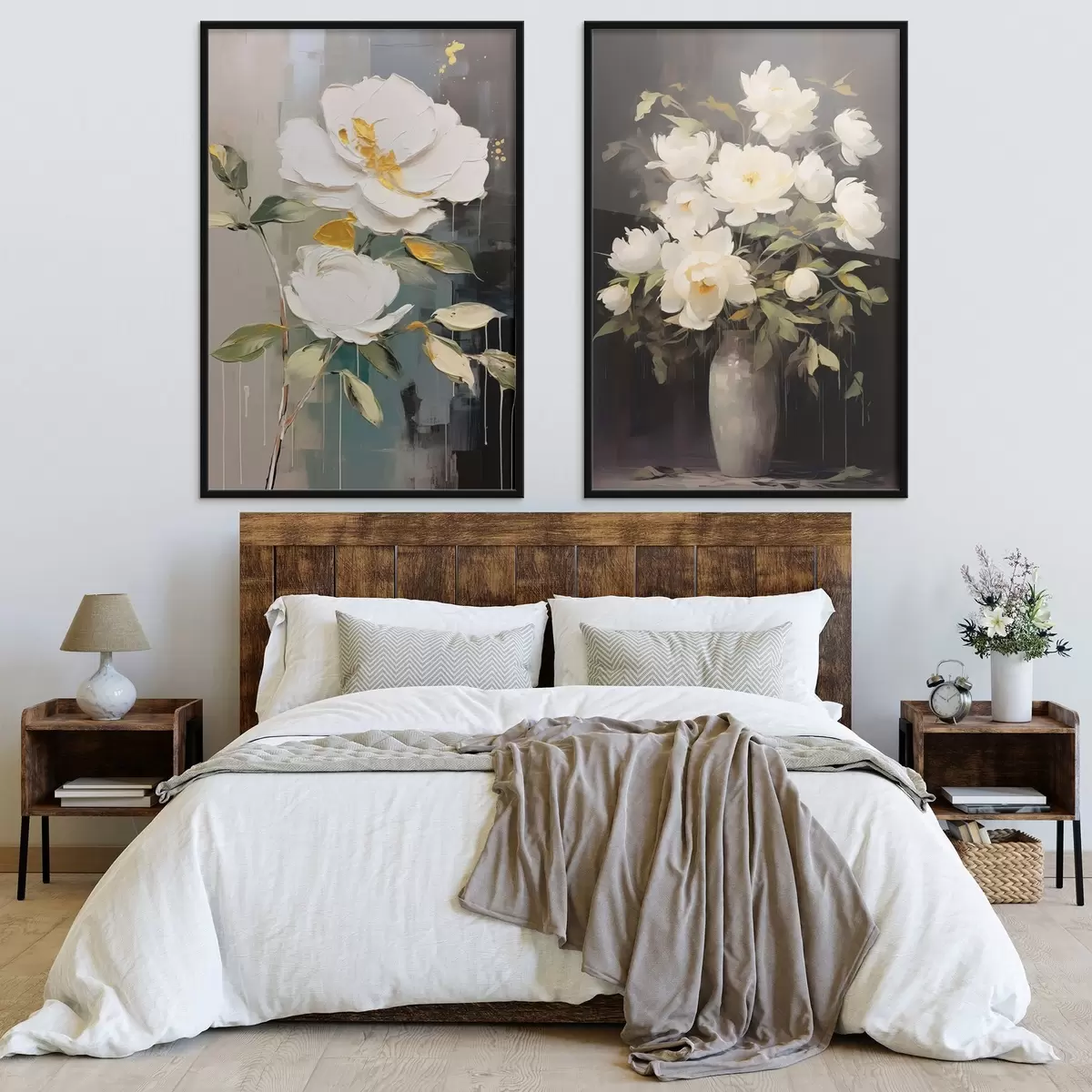 Poster Weiße Pfingstrosen auf dunklem Hintergrund: dekorative Komposition Nr d00634