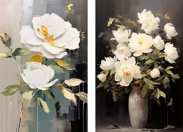 Poster Weiße Pfingstrosen auf dunklem Hintergrund: dekorative Komposition d00634