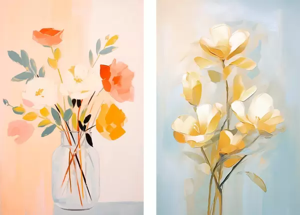 Poster Blumen in einer Vase: Zeichnung im Stil der Ölmalerei Nr d00636