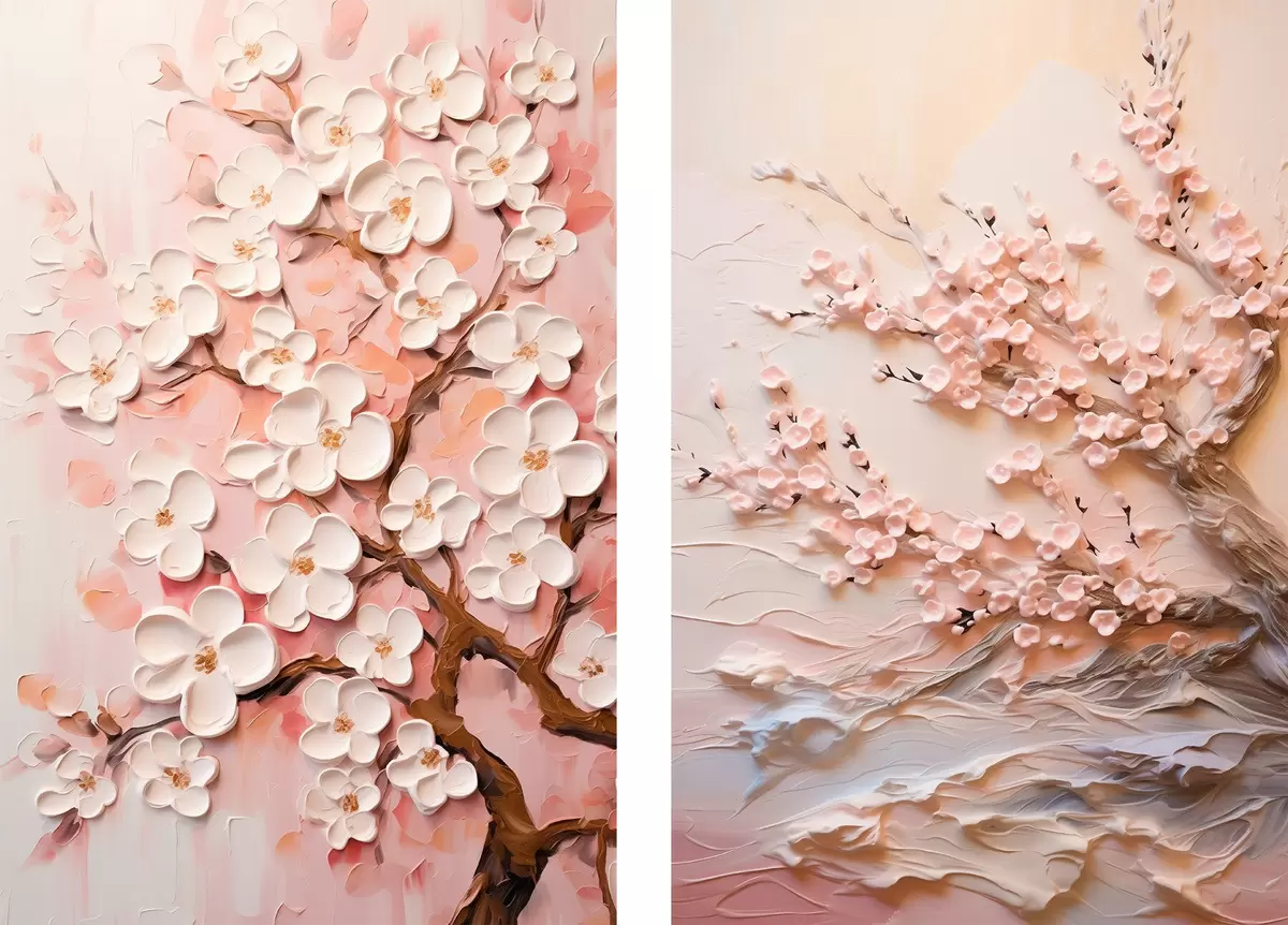 Poster Blühende Sakura: Komposition im Impasto-Stil d00638