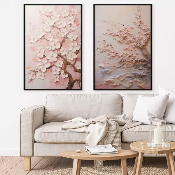 Poster Blühende Sakura: Komposition im Impasto-Stil Nr d00638