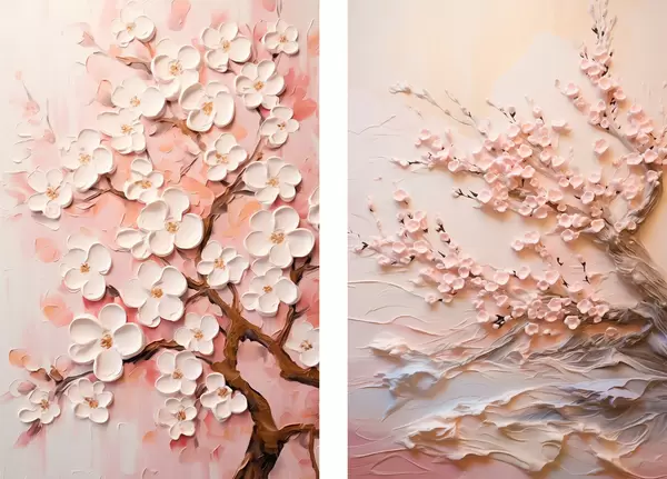 Poster Blühende Sakura: Komposition im Impasto-Stil Nr d00638