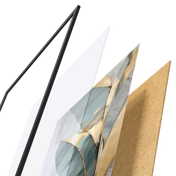 Das Poster besteht aus einem Rahmen, Plexiglas, einem gedruckten Bild und einer Rückwand aus Spanplatten. Dank der Halterungen auf der Rückseite kann das Poster sofort an die Wand gehängt werden.