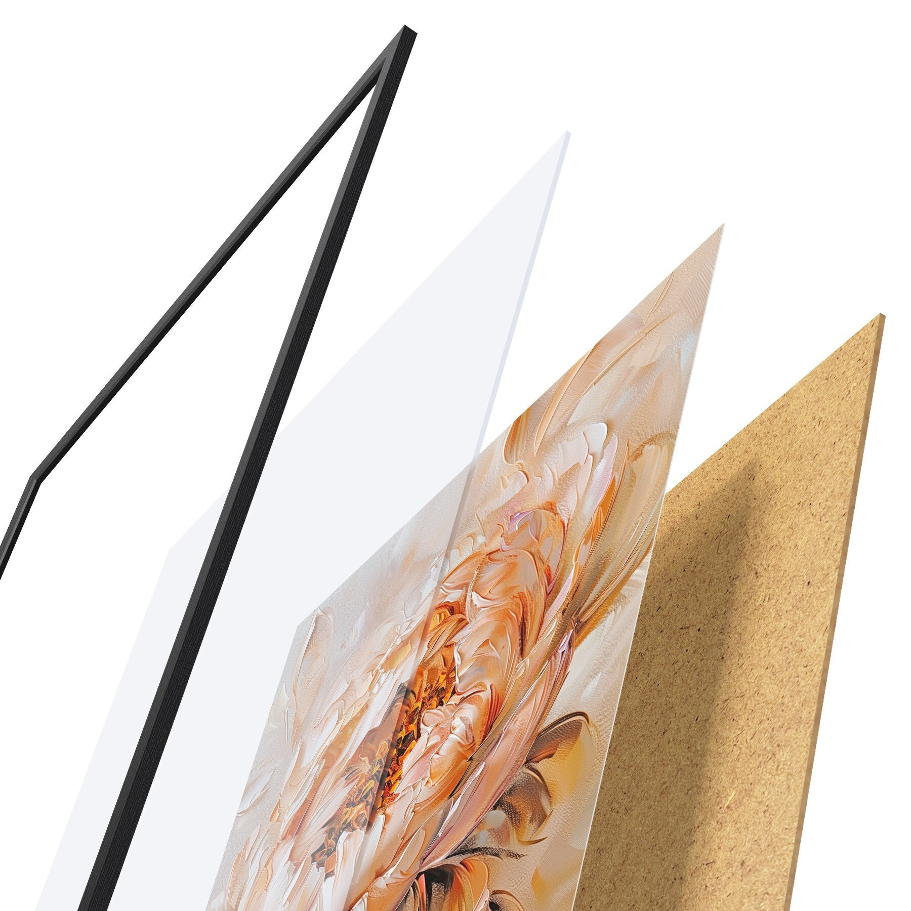 Das Poster besteht aus einem Rahmen, Plexiglas, einem gedruckten Bild und einer Rückwand aus Spanplatten. Dank der Halterungen auf der Rückseite kann das Poster sofort an die Wand gehängt werden.