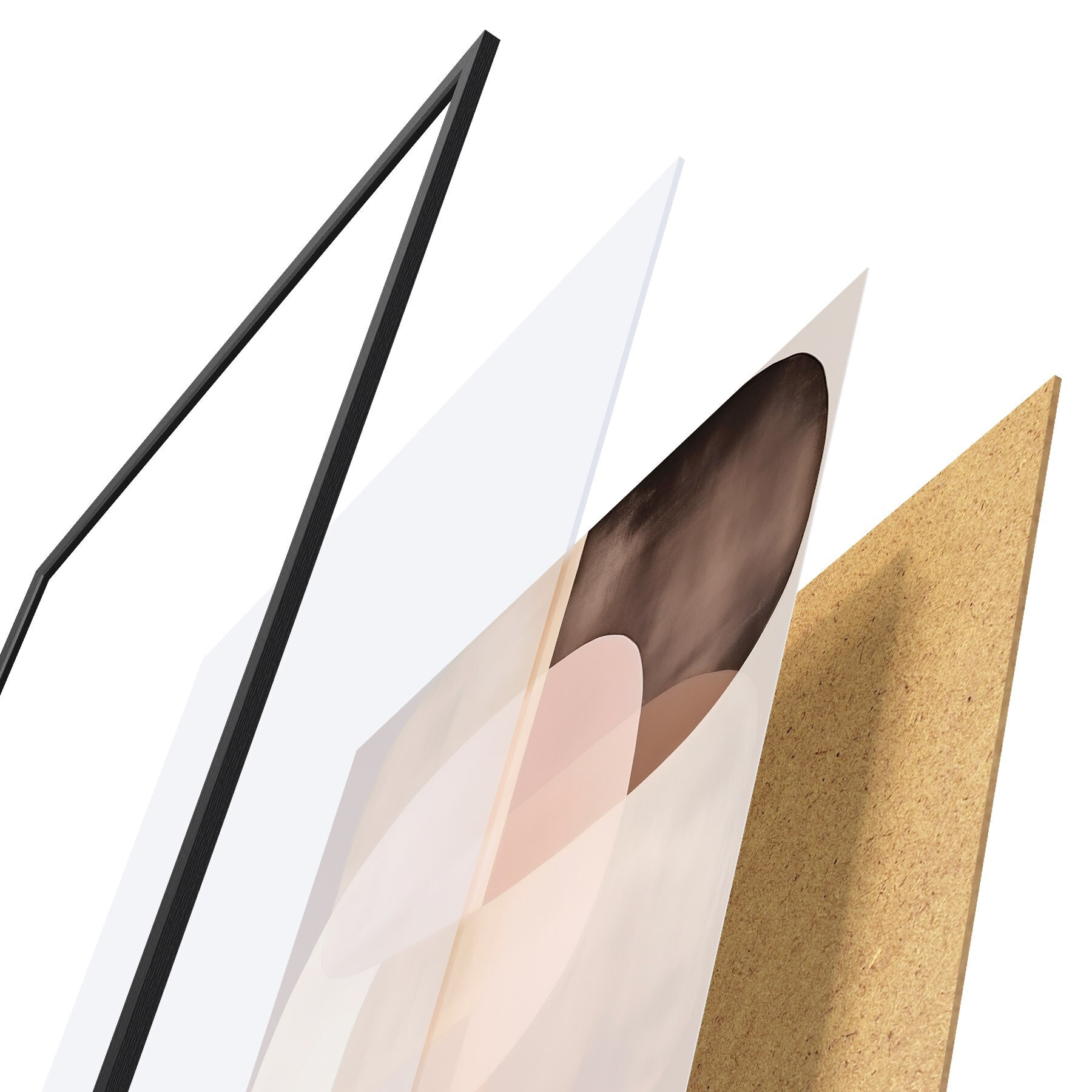 Das Poster besteht aus einem Rahmen, Plexiglas, einem gedruckten Bild und einer Rückwand aus Spanplatten. Dank der Halterungen auf der Rückseite kann das Poster sofort an die Wand gehängt werden.