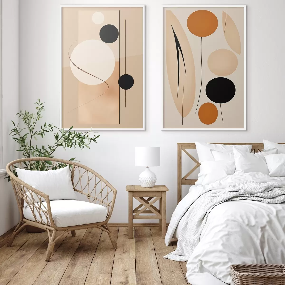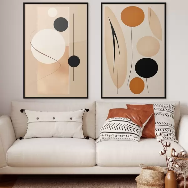 Poster Minimalistische geometrische Kreise in Beige- und Schwarztönen Nr d00685