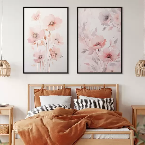 Poster Aquarell rosa Blumen auf dünnen Stielen Nr d00690