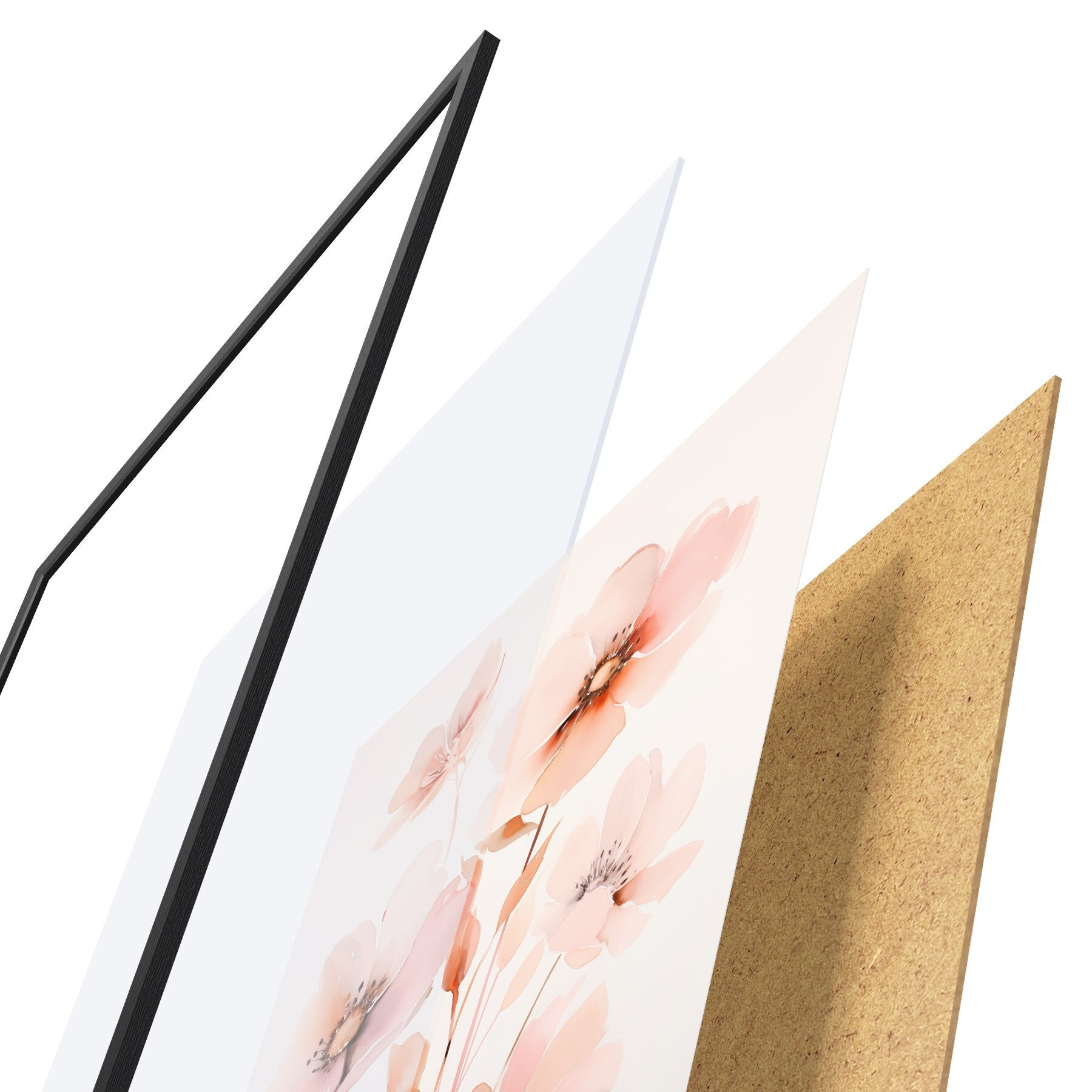 Das Poster besteht aus einem Rahmen, Plexiglas, einem gedruckten Bild und einer Rückwand aus Spanplatten. Dank der Halterungen auf der Rückseite kann das Poster sofort an die Wand gehängt werden.