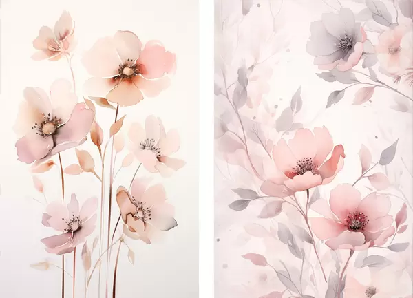 Poster Aquarell rosa Blumen auf dünnen Stielen Nr d00690