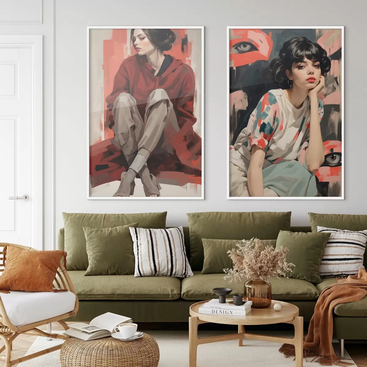 Poster Porträts von Mädchen in roten und beigen abstrakten Stilen d00695