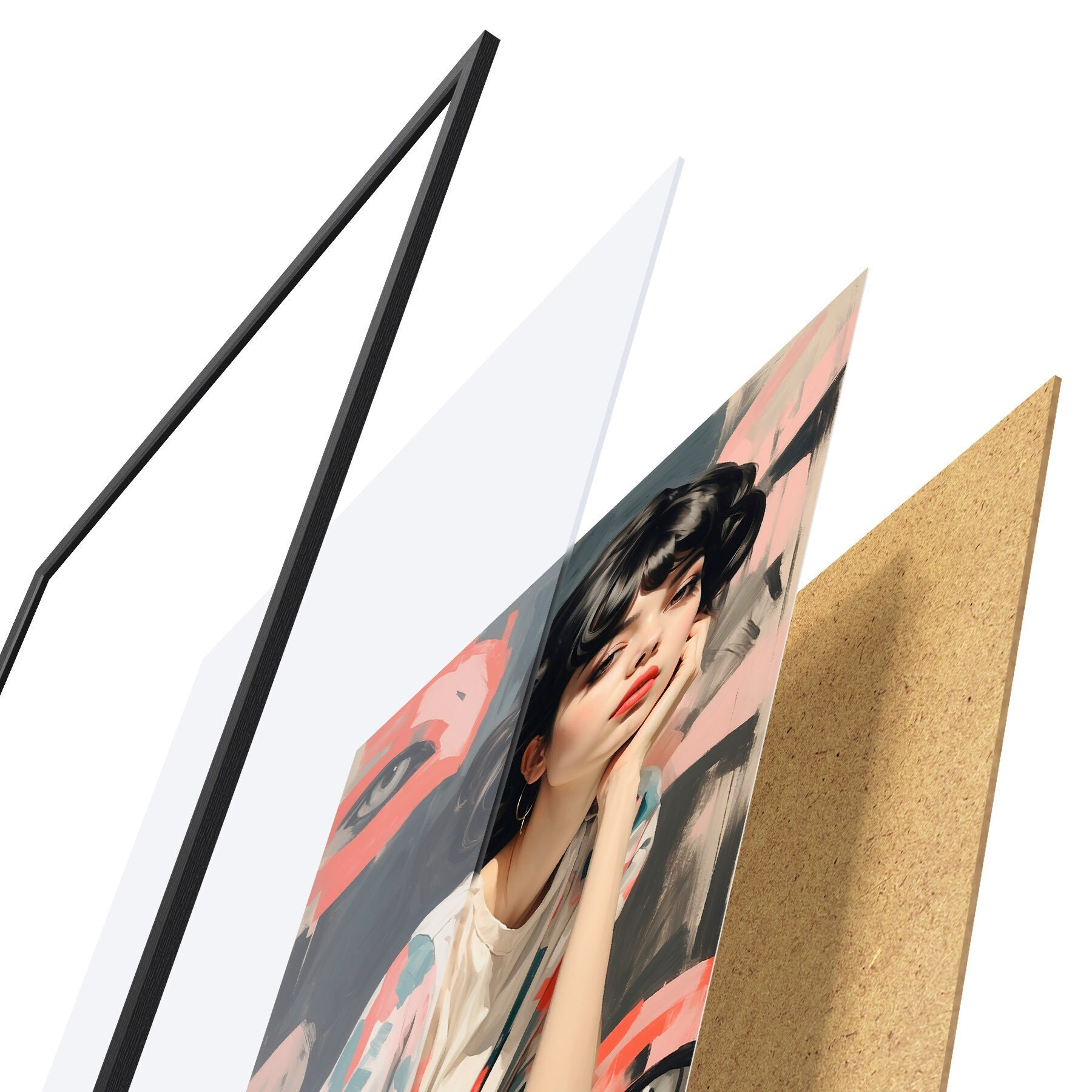 Das Poster besteht aus einem Rahmen, Plexiglas, einem gedruckten Bild und einer Rückwand aus Spanplatten. Dank der Halterungen auf der Rückseite kann das Poster sofort an die Wand gehängt werden.