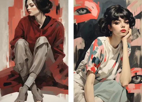 Poster Porträts von Mädchen in roten und beigen abstrakten Stilen Nr d00695