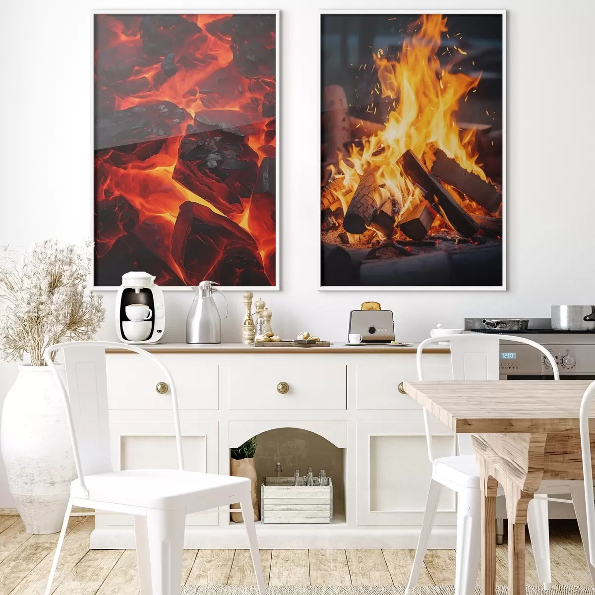 Poster Brennende Kohlen und flammendes Feuer in der Dunkelheit d00696