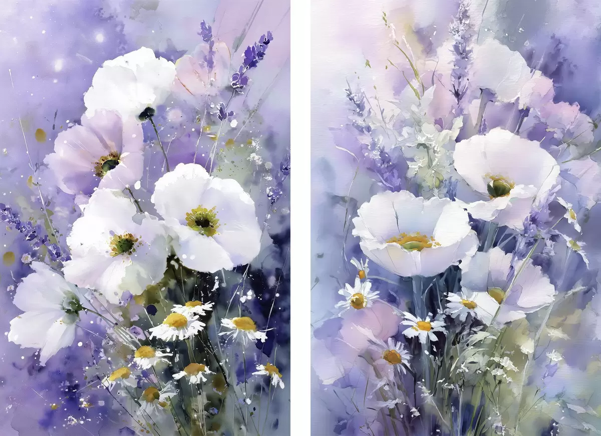Poster aquarellstrauß in Lila- und Weißtönen Nr d00704