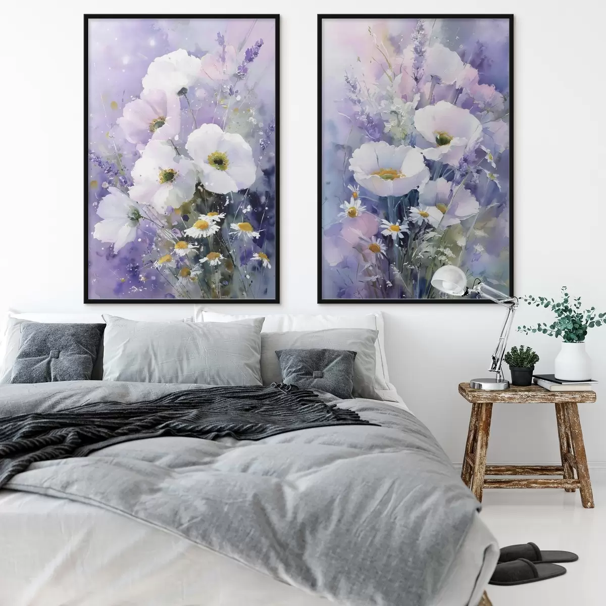Poster aquarellstrauß in Lila- und Weißtönen d00704