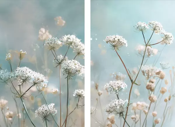 Poster Königin-Annes-Spitze-Blumen im Aquarellstil auf blauem Hintergrund d00705