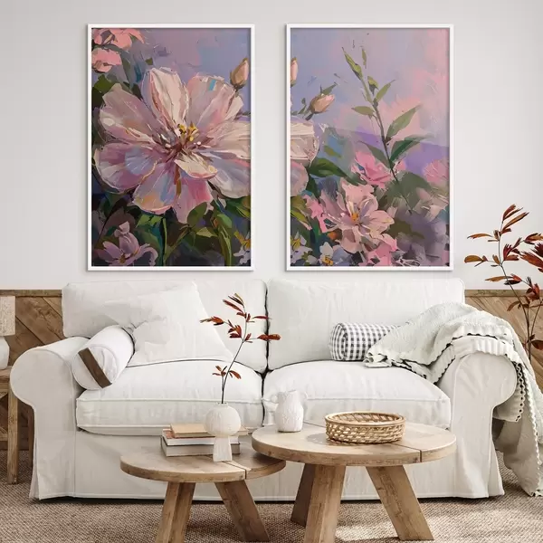 Poster rosa Blumen im Stil eines Ölgemäldes d00706