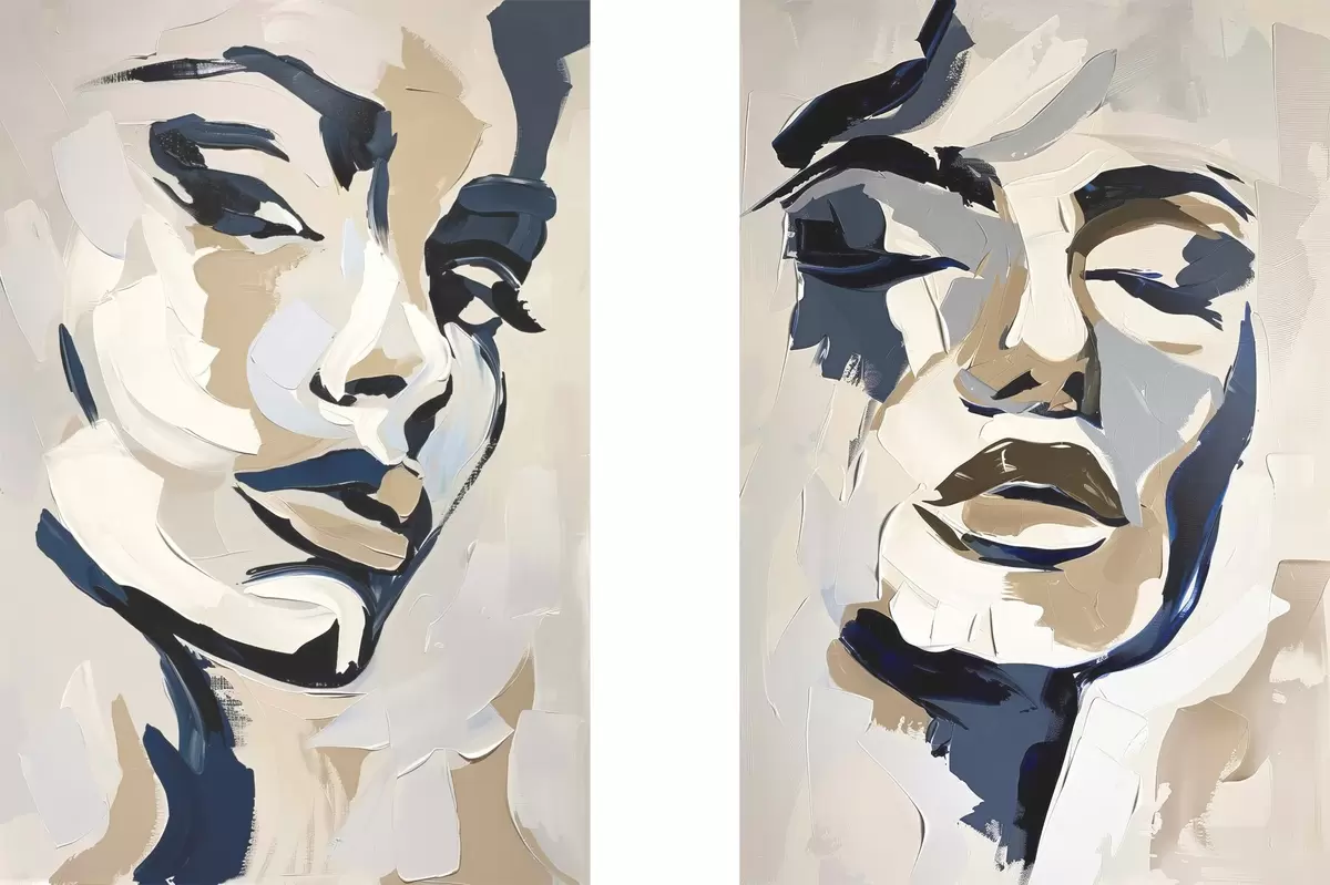 Poster Abstrakte Gesichter von Frauen mit imitierten Pinselstrichen Nr d00713