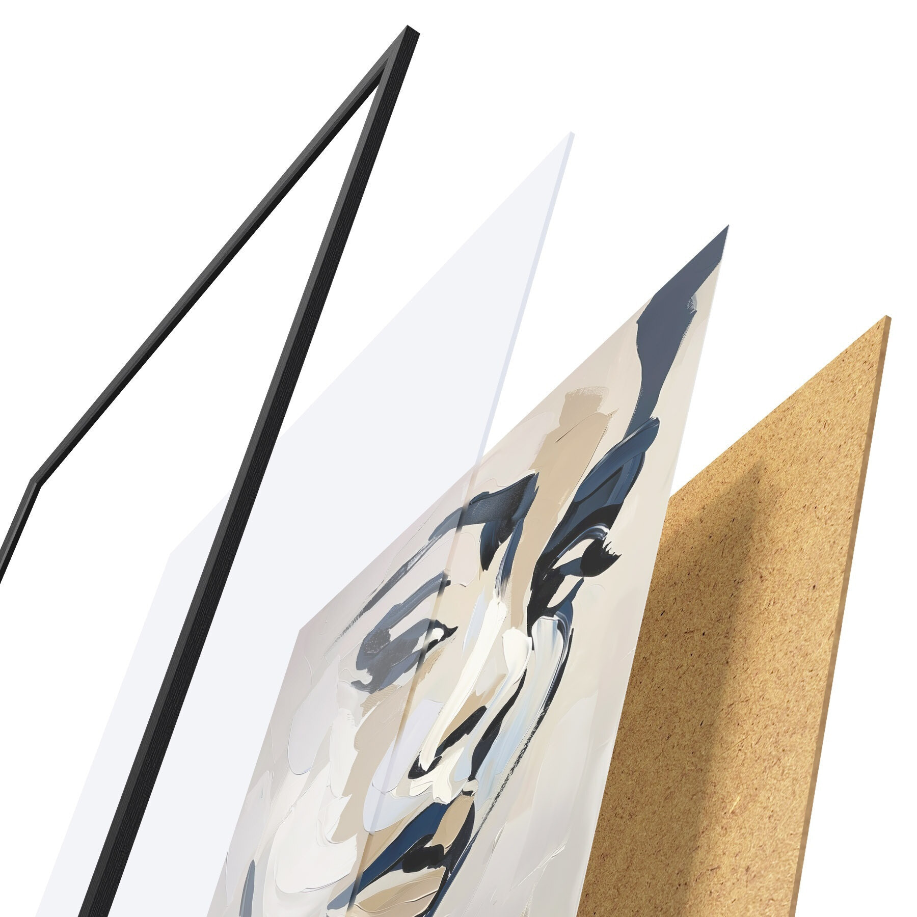 Das Poster besteht aus einem Rahmen, Plexiglas, einem gedruckten Bild und einer Rückwand aus Spanplatten. Dank der Halterungen auf der Rückseite kann das Poster sofort an die Wand gehängt werden.