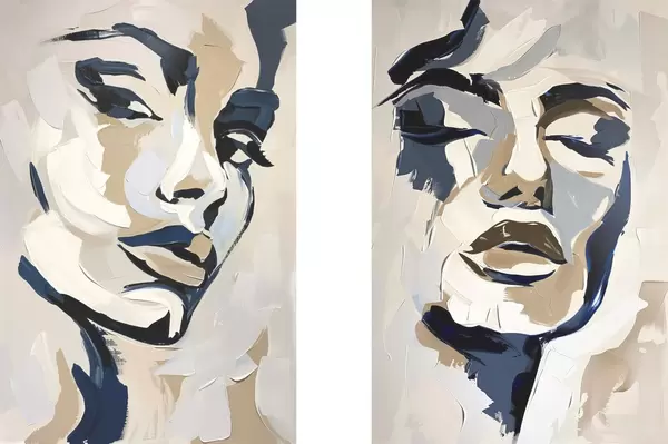 Poster Abstrakte Gesichter von Frauen mit imitierten Pinselstrichen Nr d00713