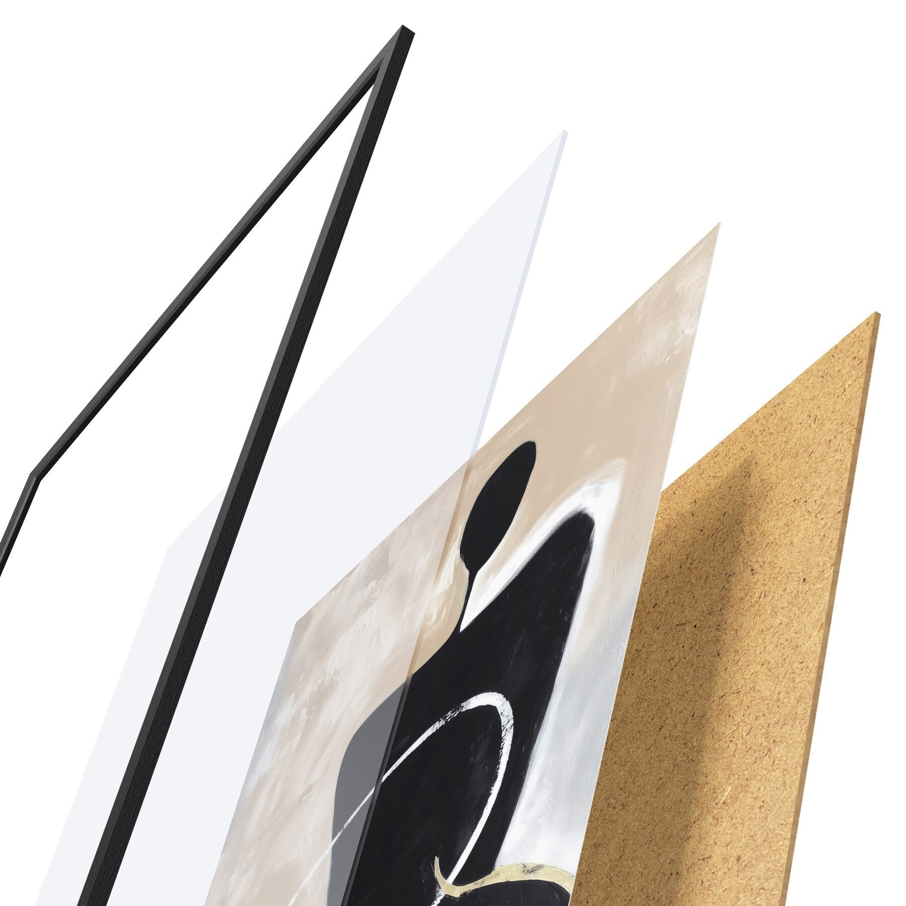 Das Poster besteht aus einem Rahmen, Plexiglas, einem gedruckten Bild und einer Rückwand aus Spanplatten. Dank der Halterungen auf der Rückseite kann das Poster sofort an die Wand gehängt werden.