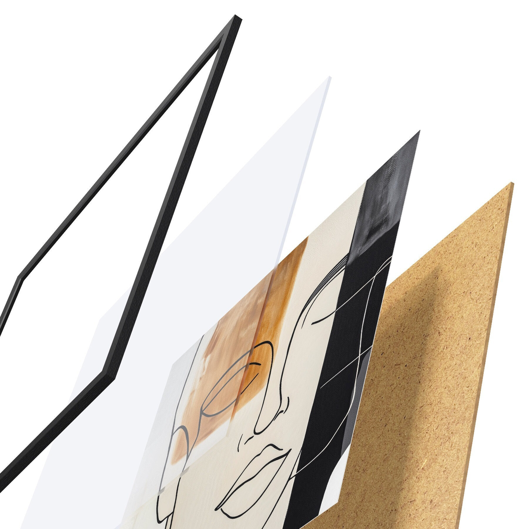 Das Poster besteht aus einem Rahmen, Plexiglas, einem gedruckten Bild und einer Rückwand aus Spanplatten. Dank der Halterungen auf der Rückseite kann das Poster sofort an die Wand gehängt werden.