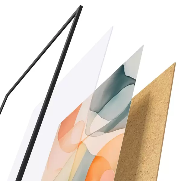 Das Poster besteht aus einem Rahmen, Plexiglas, einem gedruckten Bild und einer Rückwand aus Spanplatten. Dank der Halterungen auf der Rückseite kann das Poster sofort an die Wand gehängt werden.