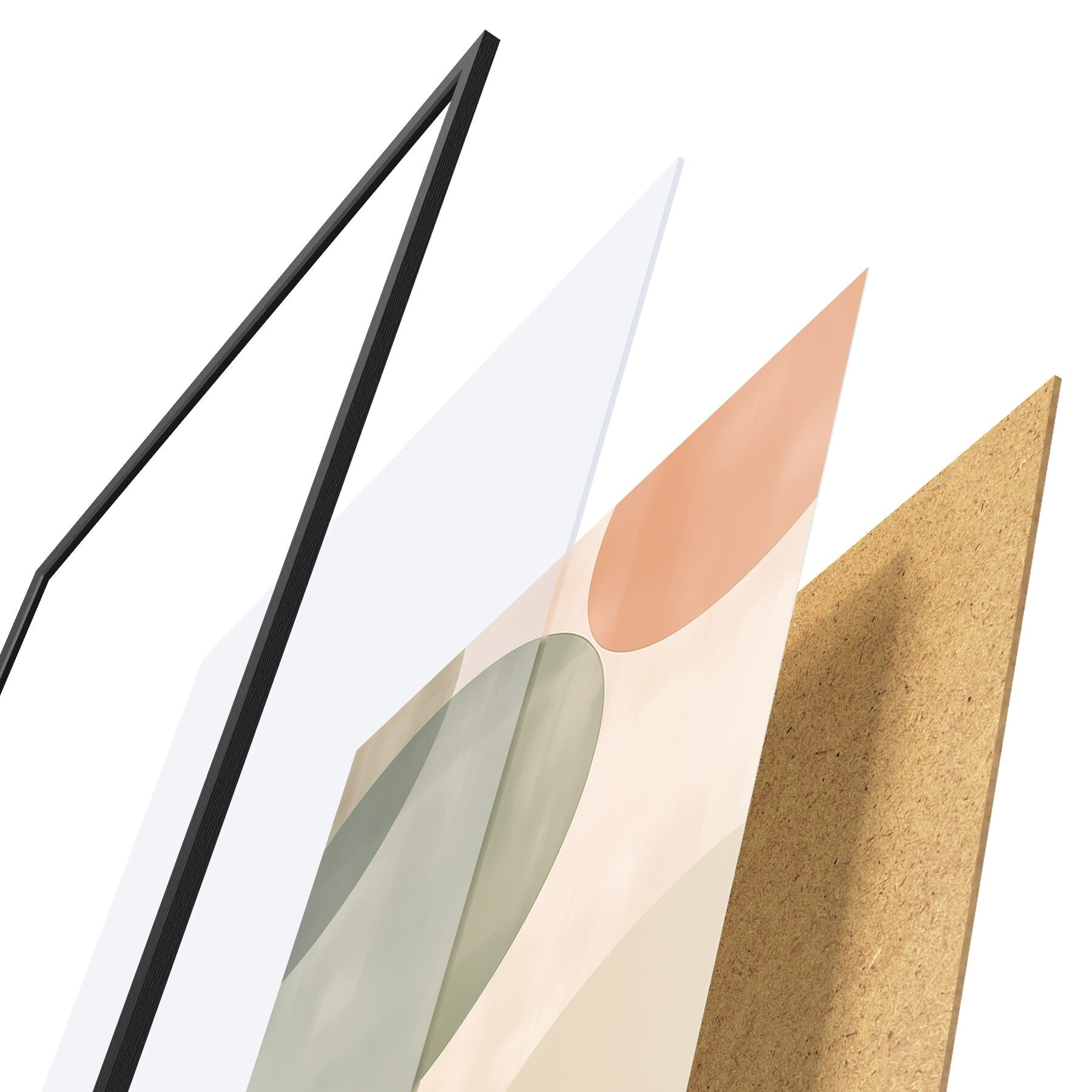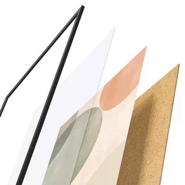 Das Poster besteht aus einem Rahmen, Plexiglas, einem gedruckten Bild und einer Rückwand aus Spanplatten. Dank der Halterungen auf der Rückseite kann das Poster sofort an die Wand gehängt werden.
