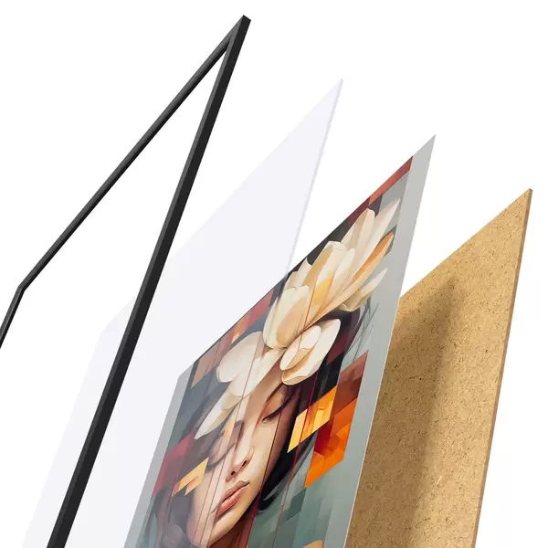 Das Poster besteht aus einem Rahmen, Plexiglas, einem gedruckten Bild und einer Rückwand aus Spanplatten. Dank der Halterungen auf der Rückseite kann das Poster sofort an die Wand gehängt werden.