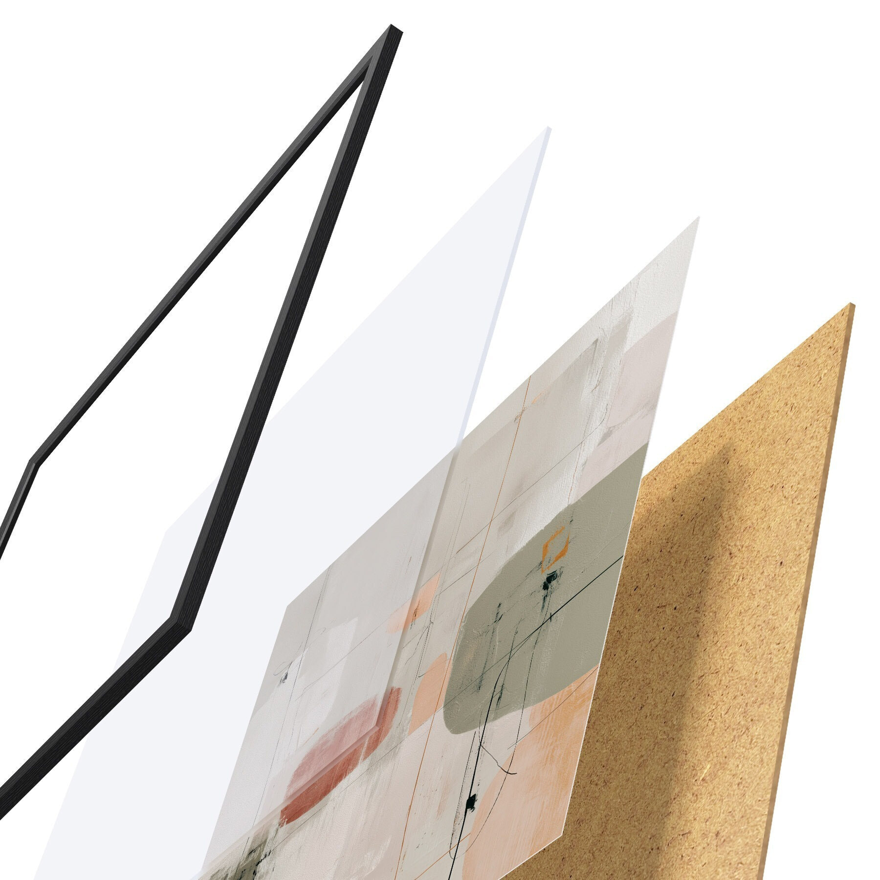 Das Poster besteht aus einem Rahmen, Plexiglas, einem gedruckten Bild und einer Rückwand aus Spanplatten. Dank der Halterungen auf der Rückseite kann das Poster sofort an die Wand gehängt werden.