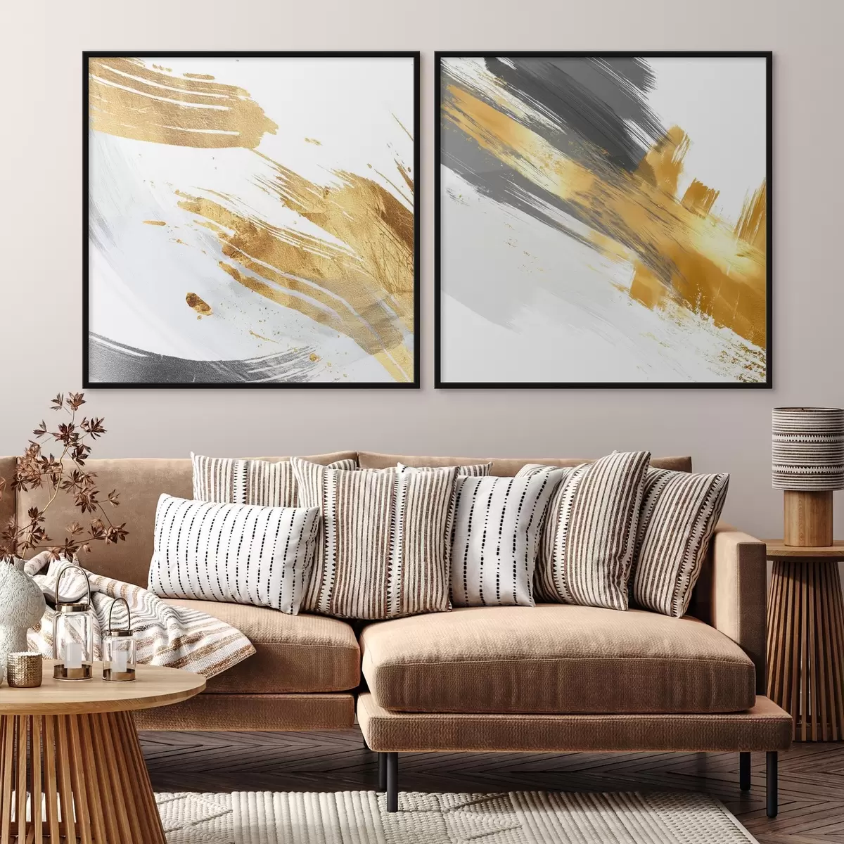 Poster Dynamische Abstraktion mit gelben und grauen Strichen Nr d00748