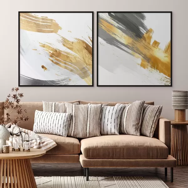 Poster Dynamische Abstraktion mit gelben und grauen Strichen d00748
