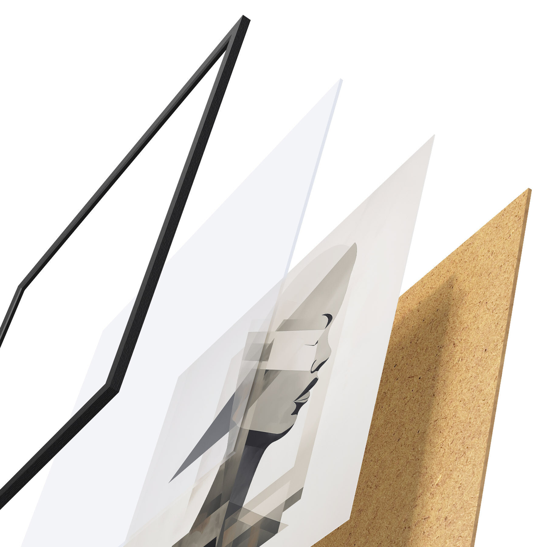 Das Poster besteht aus einem Rahmen, Plexiglas, einem gedruckten Bild und einer Rückwand aus Spanplatten. Dank der Halterungen auf der Rückseite kann das Poster sofort an die Wand gehängt werden.
