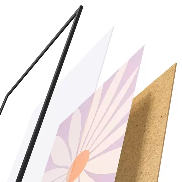 Das Poster besteht aus einem Rahmen, Plexiglas, einem gedruckten Bild und einer Rückwand aus Spanplatten. Dank der Halterungen auf der Rückseite kann das Poster sofort an die Wand gehängt werden.