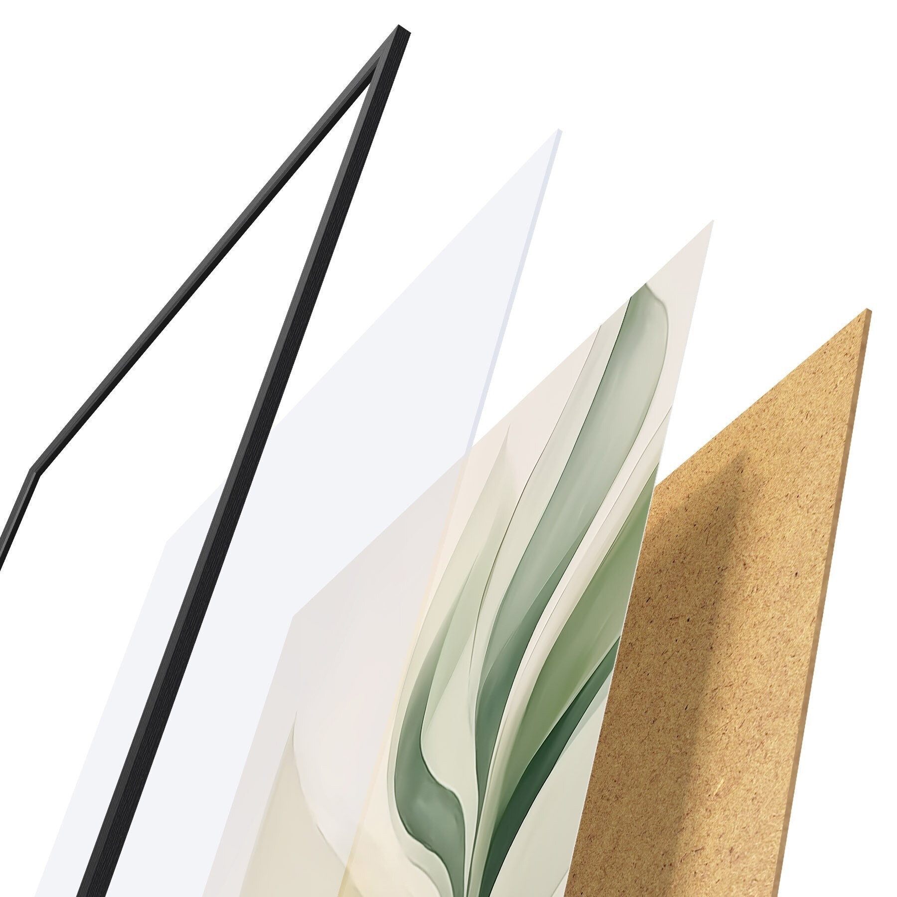 Das Poster besteht aus einem Rahmen, Plexiglas, einem gedruckten Bild und einer Rückwand aus Spanplatten. Dank der Halterungen auf der Rückseite kann das Poster sofort an die Wand gehängt werden.