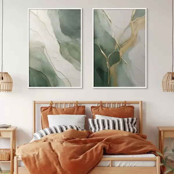 Poster Smaragdgrüne Wellen mit gelben Rinnsalen d00764