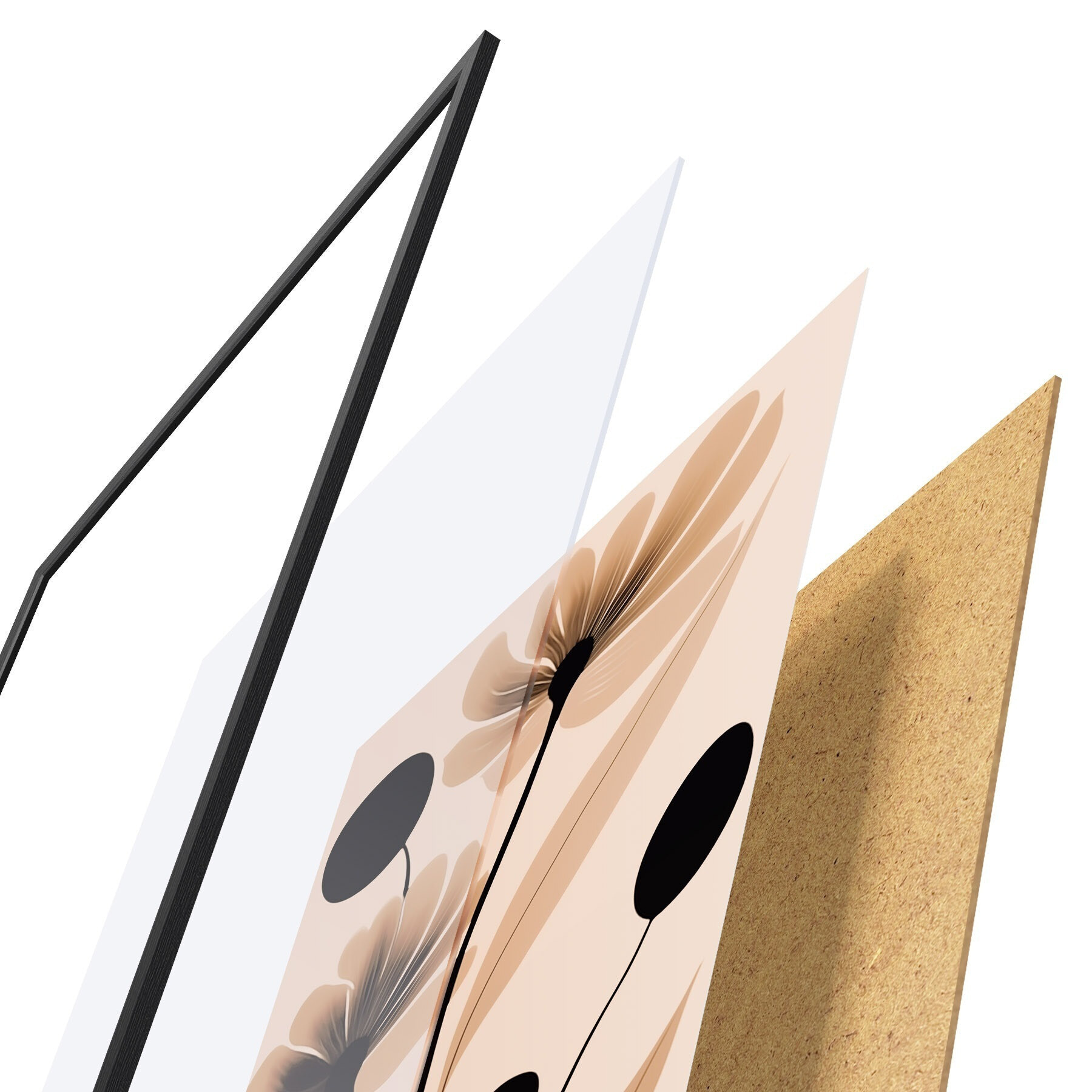 Das Poster besteht aus einem Rahmen, Plexiglas, einem gedruckten Bild und einer Rückwand aus Spanplatten. Dank der Halterungen auf der Rückseite kann das Poster sofort an die Wand gehängt werden.