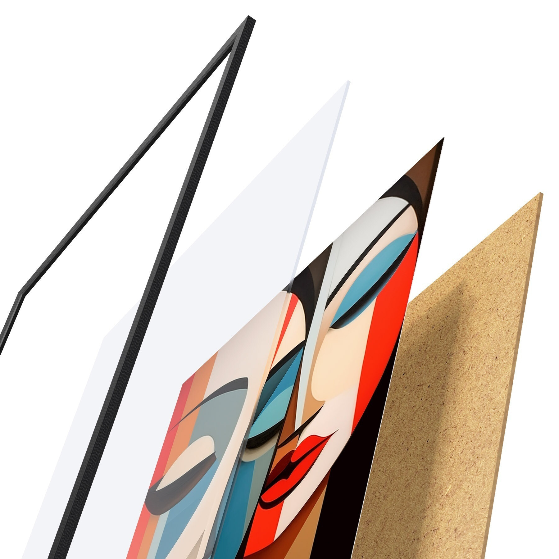 Das Poster besteht aus einem Rahmen, Plexiglas, einem gedruckten Bild und einer Rückwand aus Spanplatten. Dank der Halterungen auf der Rückseite kann das Poster sofort an die Wand gehängt werden.
