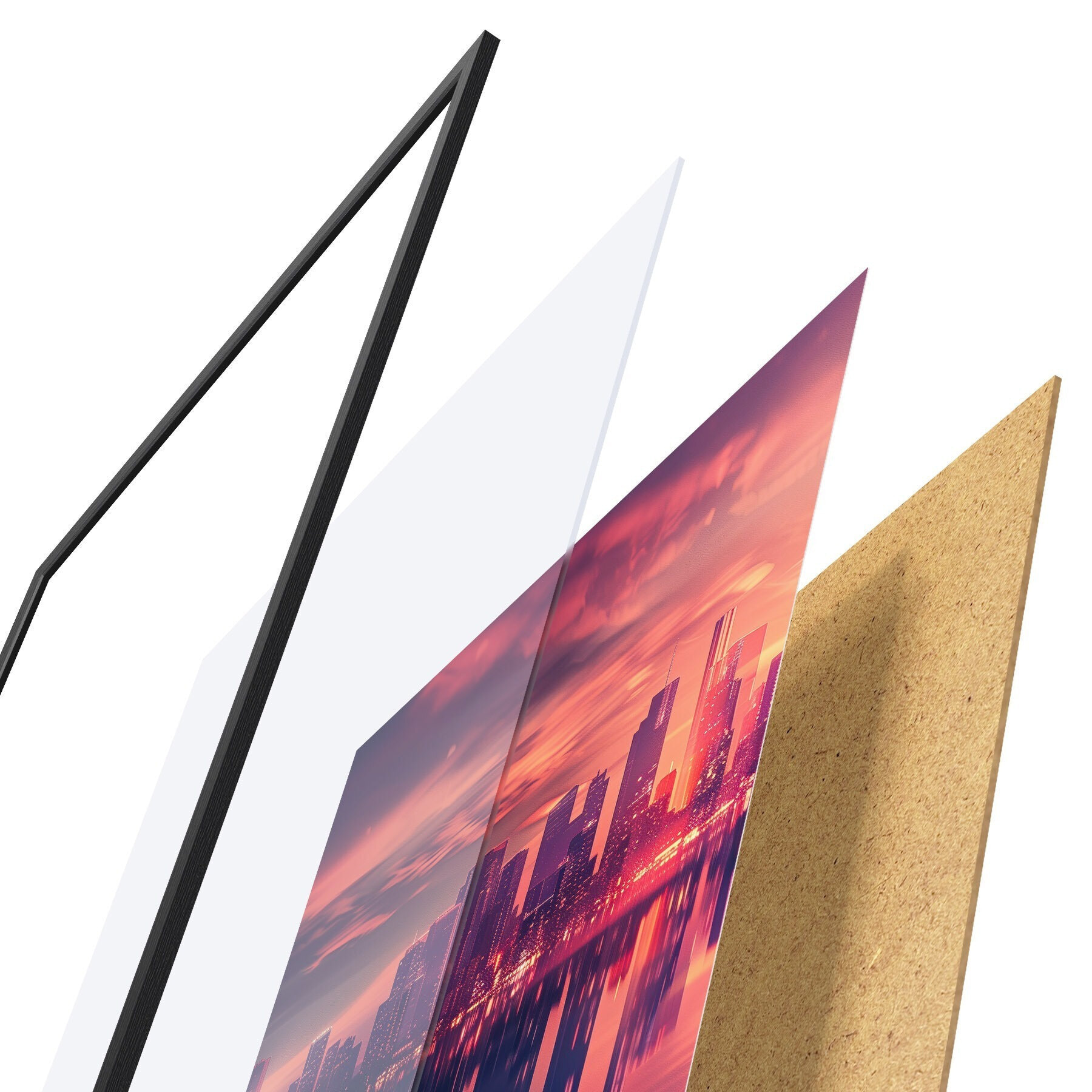 Poster Romantischer Sonnenuntergang mit einer modernen Stadt im Hintergrund Nr d00784