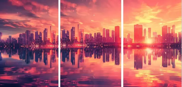 Poster Romantischer Sonnenuntergang mit einer modernen Stadt im Hintergrund Nr d00784