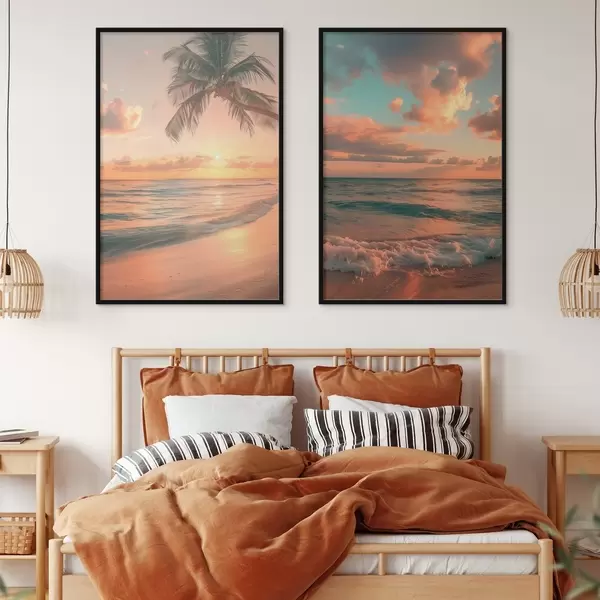Poster Sonnenuntergang an der Küste mit Blick auf die Wellen Nr d00787
