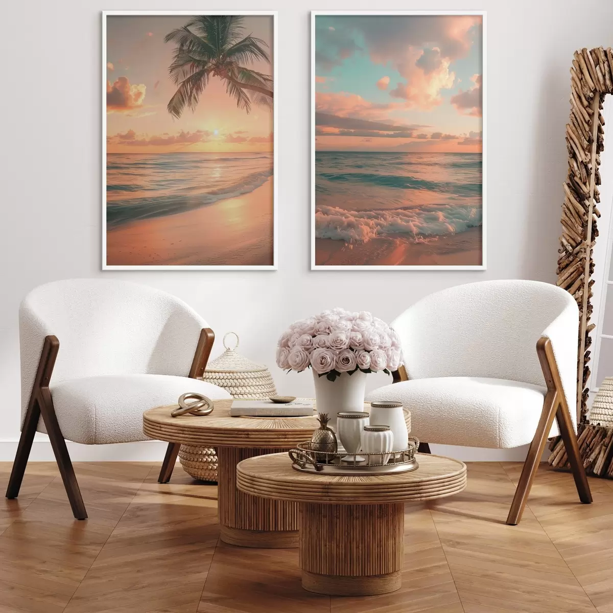 Poster Sonnenuntergang an der Küste mit Blick auf die Wellen d00787