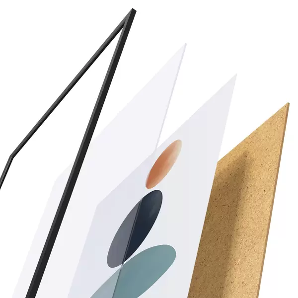 Das Poster besteht aus einem Rahmen, Plexiglas, einem gedruckten Bild und einer Rückwand aus Spanplatten. Dank der Halterungen auf der Rückseite kann das Poster sofort an die Wand gehängt werden.