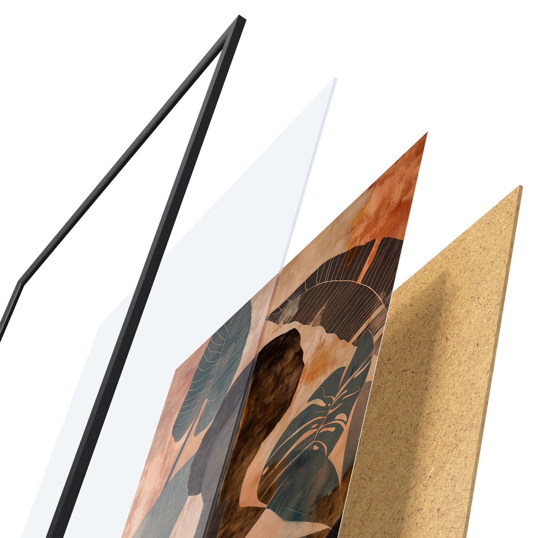 Das Poster besteht aus einem Rahmen, Plexiglas, einem gedruckten Bild und einer Rückwand aus Spanplatten. Dank der Halterungen auf der Rückseite kann das Poster sofort an die Wand gehängt werden.