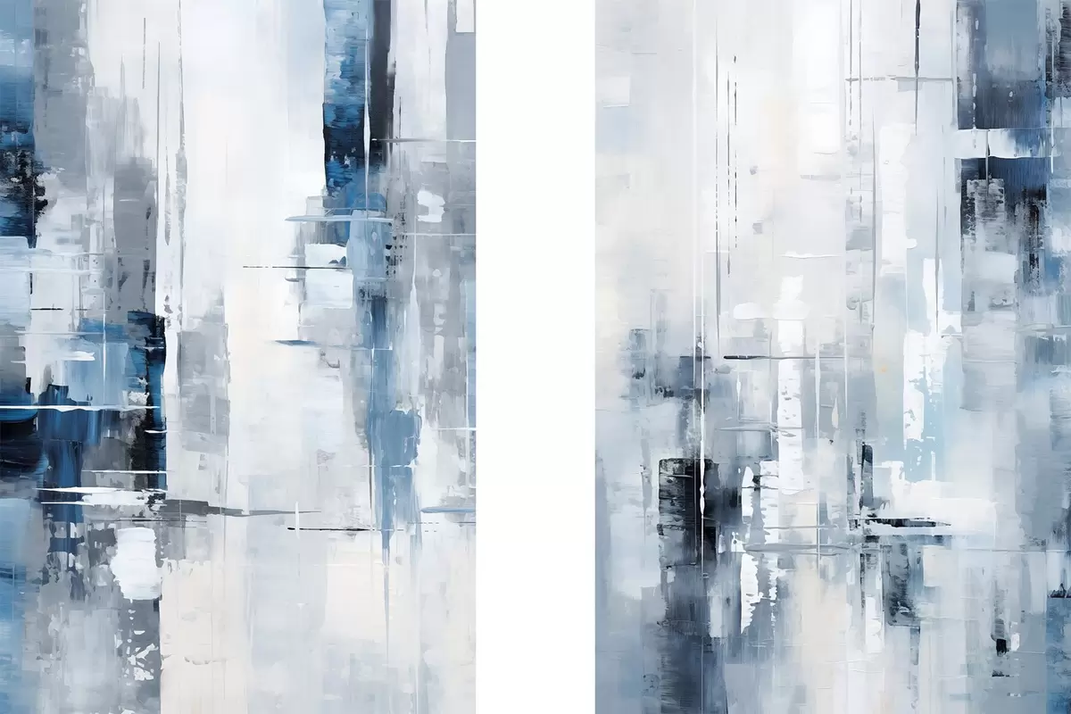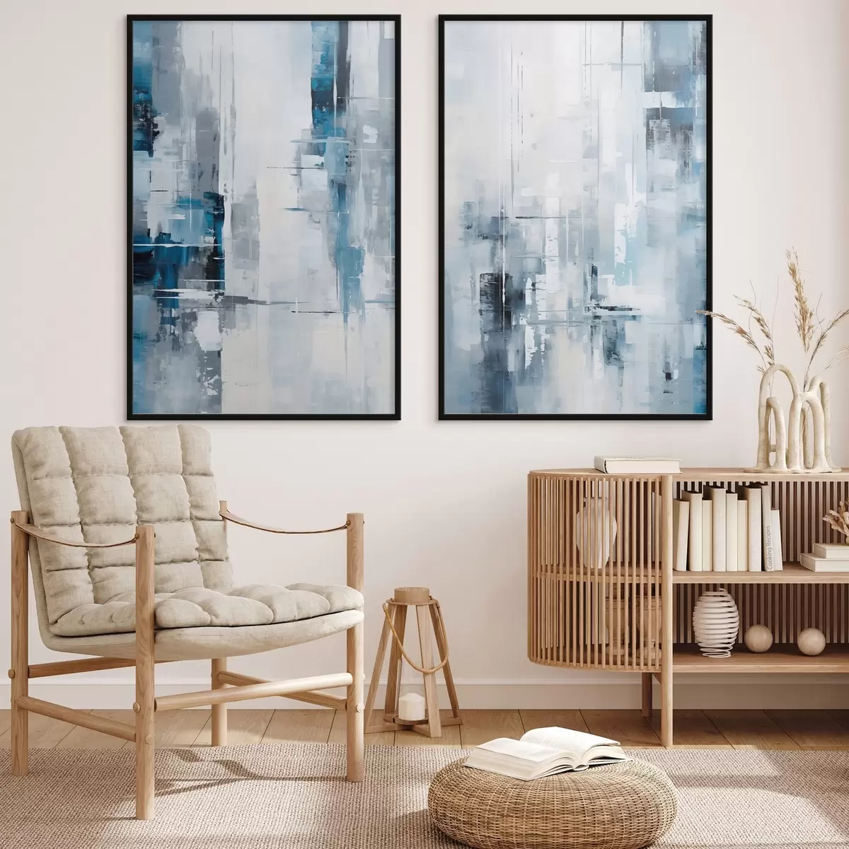 Poster Abstrakte Malerei-Imitation mit blauen, grauen und weißen Farben, vertikalen Linien und geometrischen Formen Nr d00819