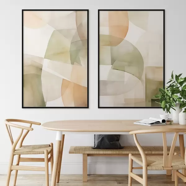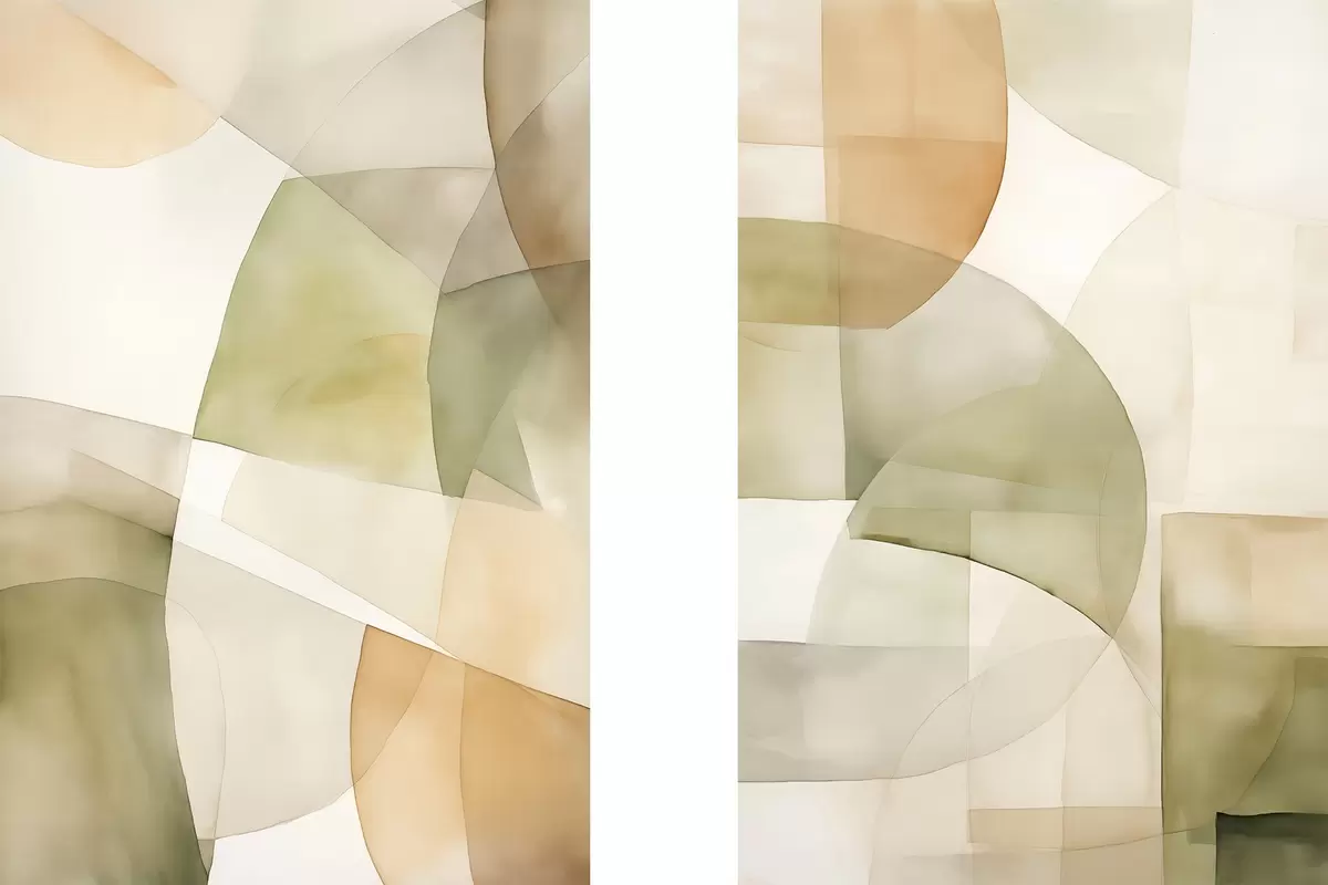 Poster Abstrakte geometrische Formen mit Aquarellstruktur in Grün-, Braun- und Beigetönen Nr d00820