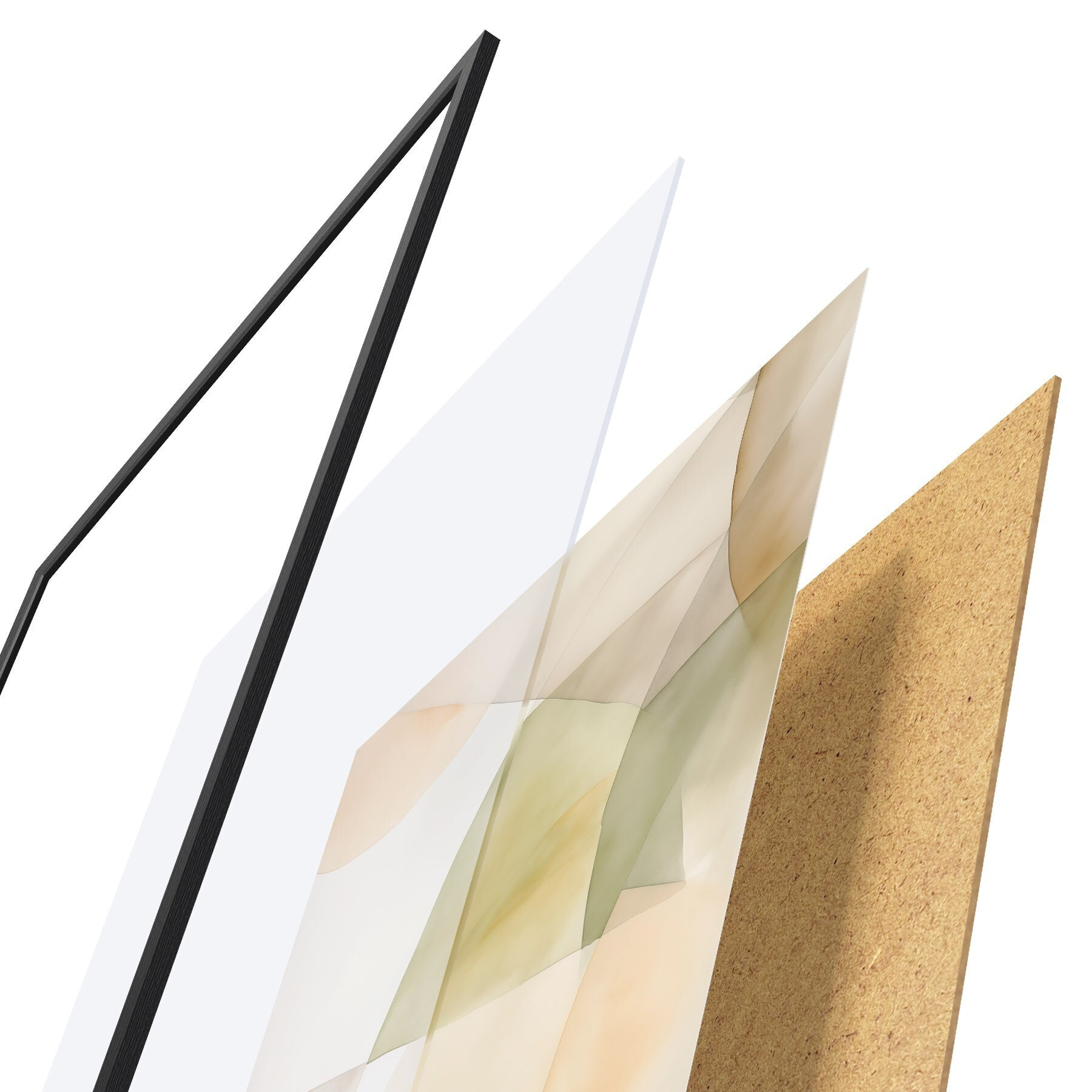 Das Poster besteht aus einem Rahmen, Plexiglas, einem gedruckten Bild und einer Rückwand aus Spanplatten. Dank der Halterungen auf der Rückseite kann das Poster sofort an die Wand gehängt werden.