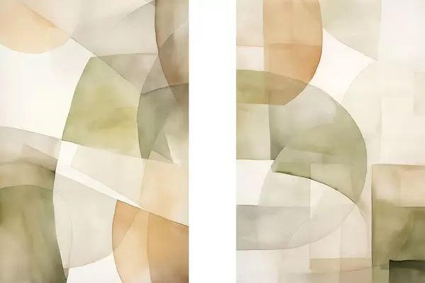 Poster Abstrakte geometrische Formen mit Aquarellstruktur in Grün-, Braun- und Beigetönen Nr d00820