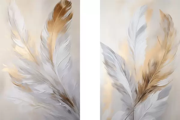 Poster Federn mit orangefarbenen Akzenten, strukturierte minimalistische Komposition, moderne Kunst Nr d00828