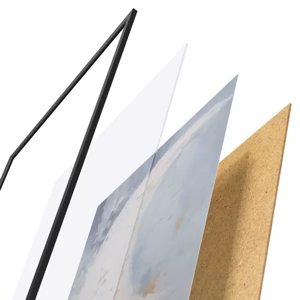 Das Poster besteht aus einem Rahmen, Plexiglas, einem gedruckten Bild und einer Rückwand aus Spanplatten. Dank der Halterungen auf der Rückseite kann das Poster sofort an die Wand gehängt werden.